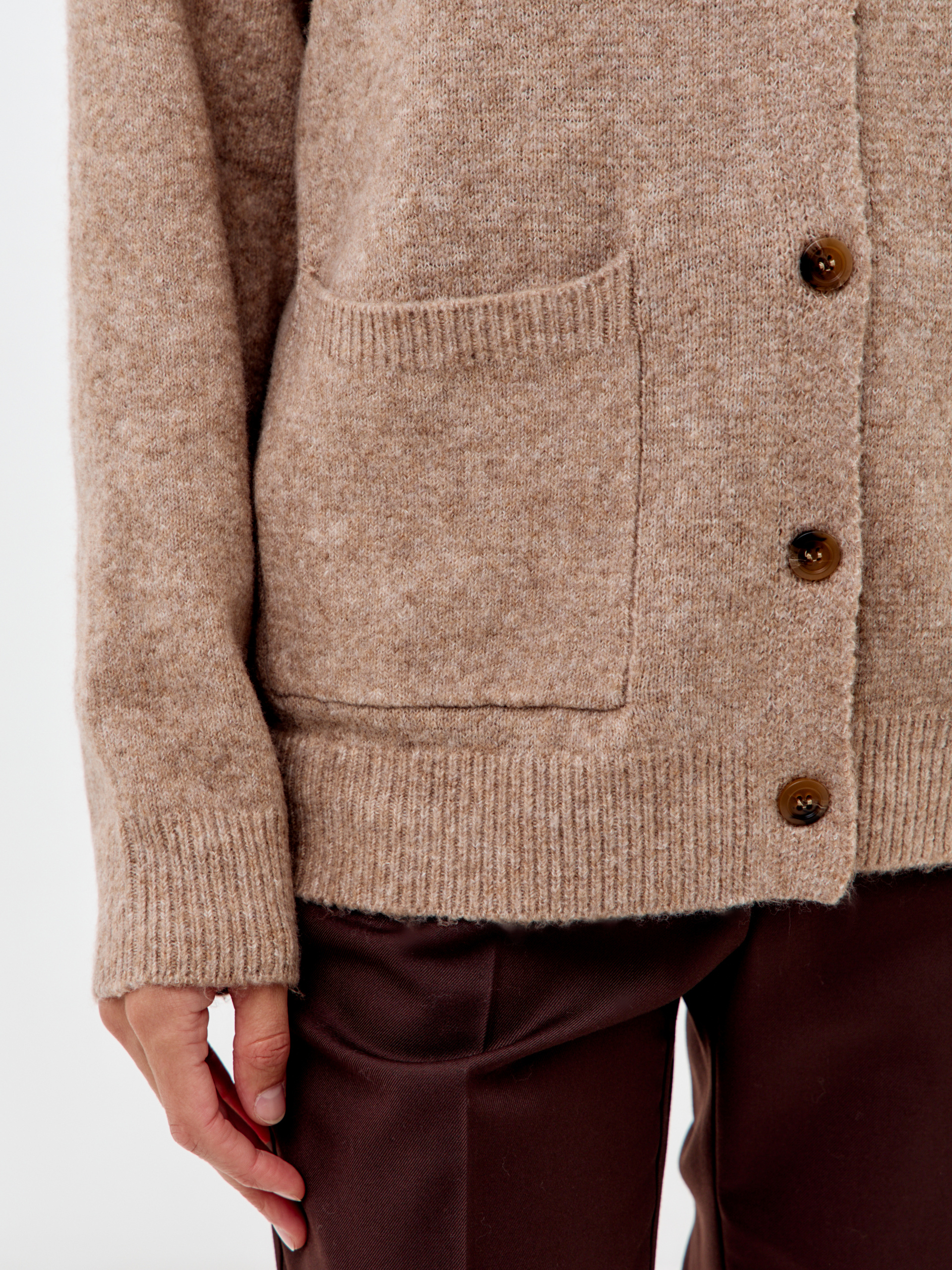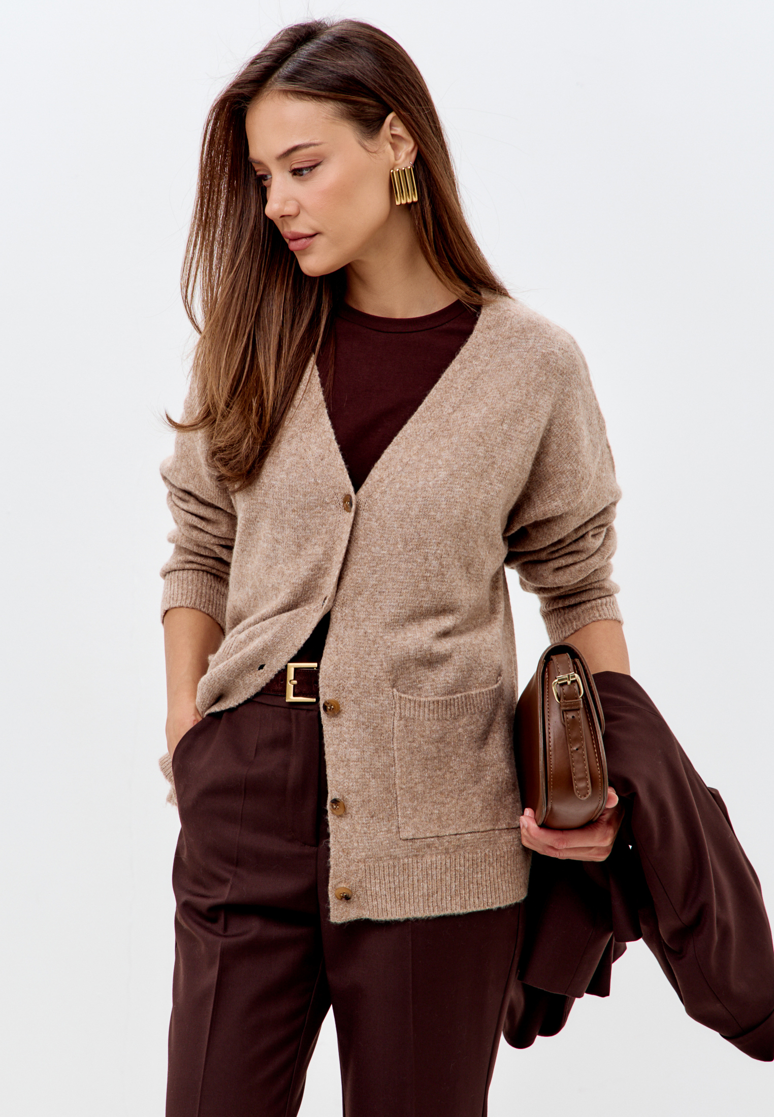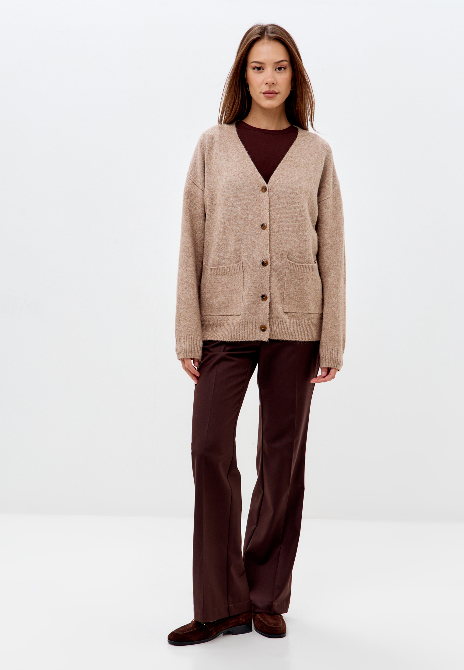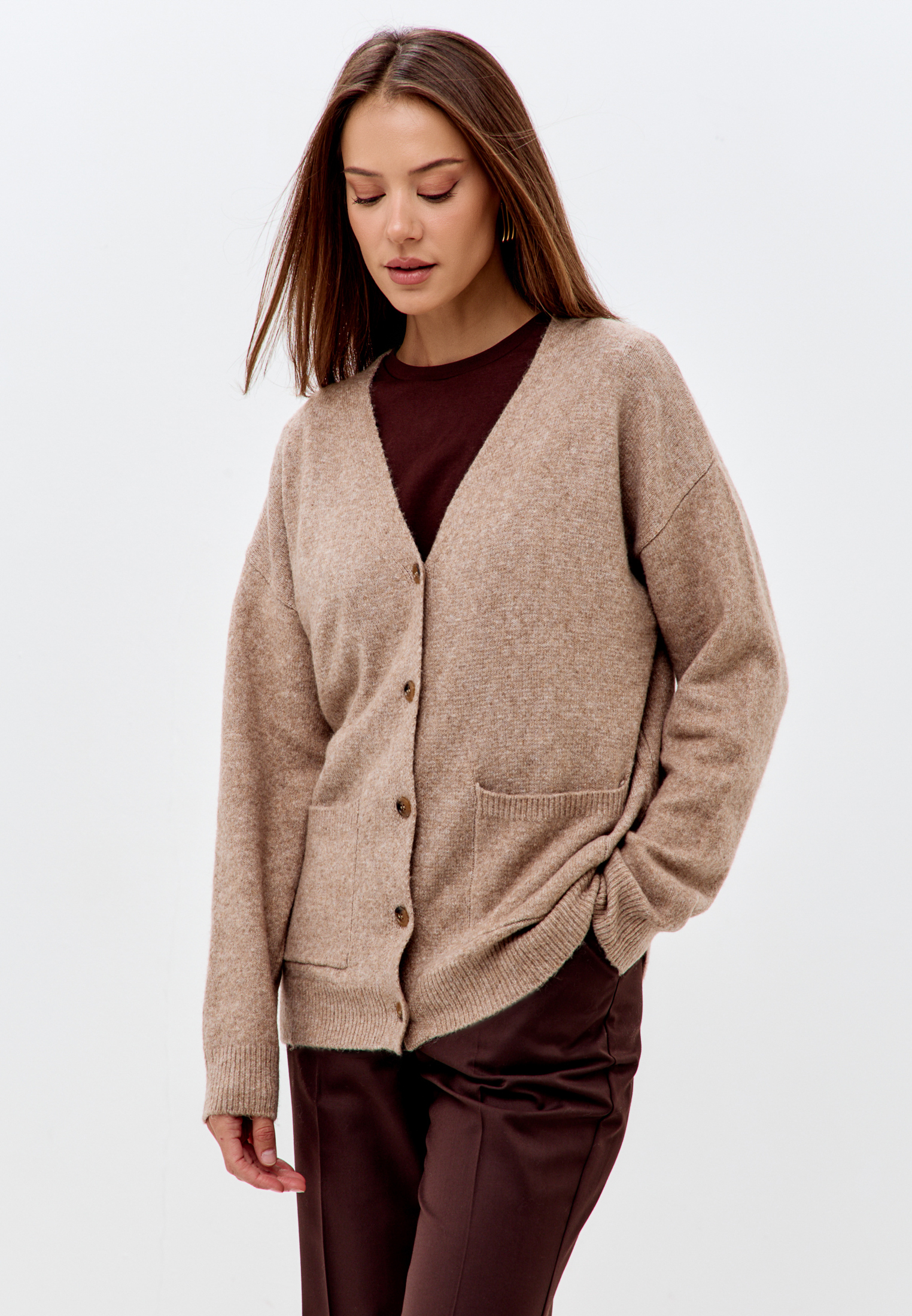Кардиган свободного силуэта на пуговицах с накладными карманами.
