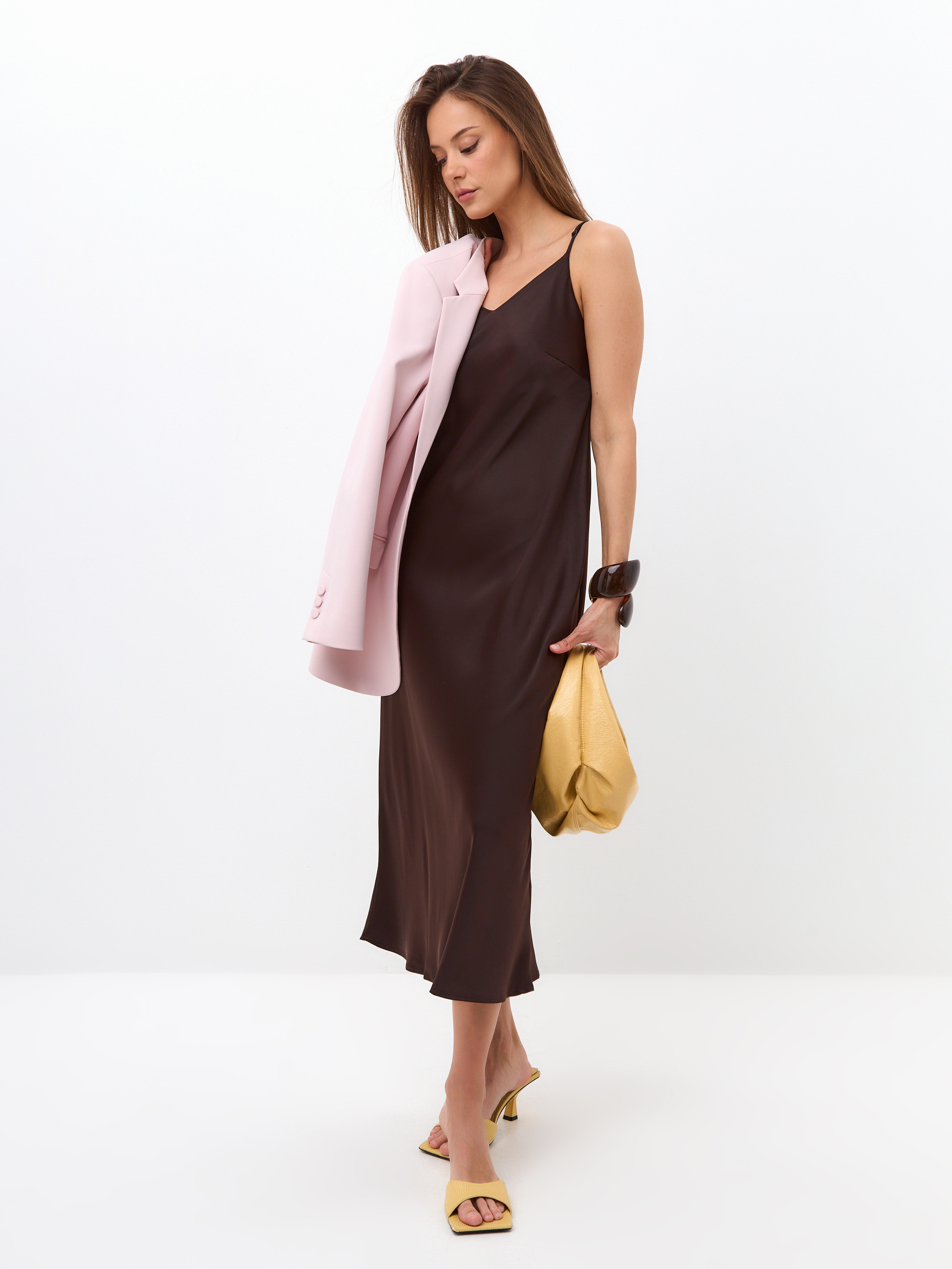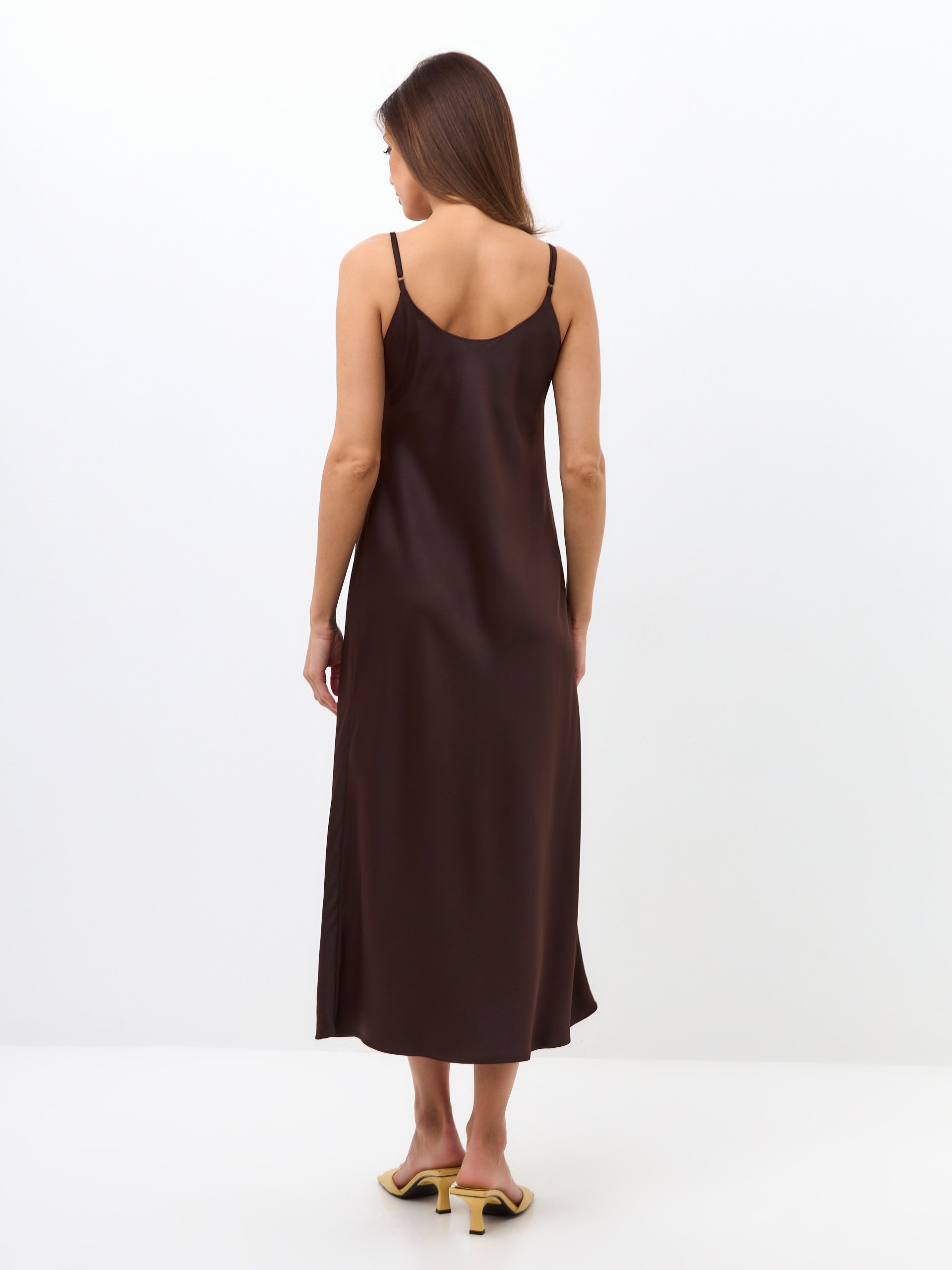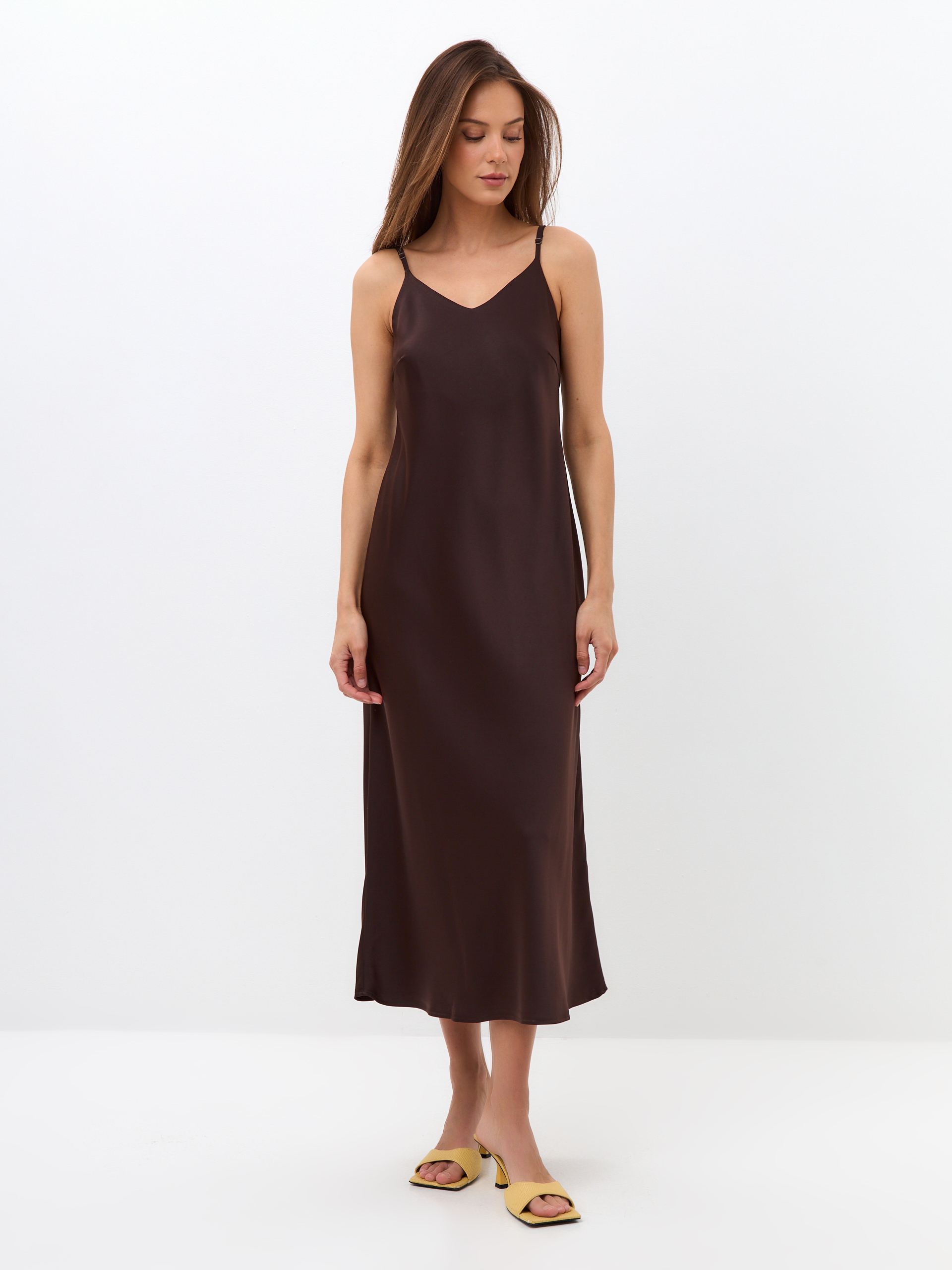 Атласное платье-комбинация с V-образным вырезом