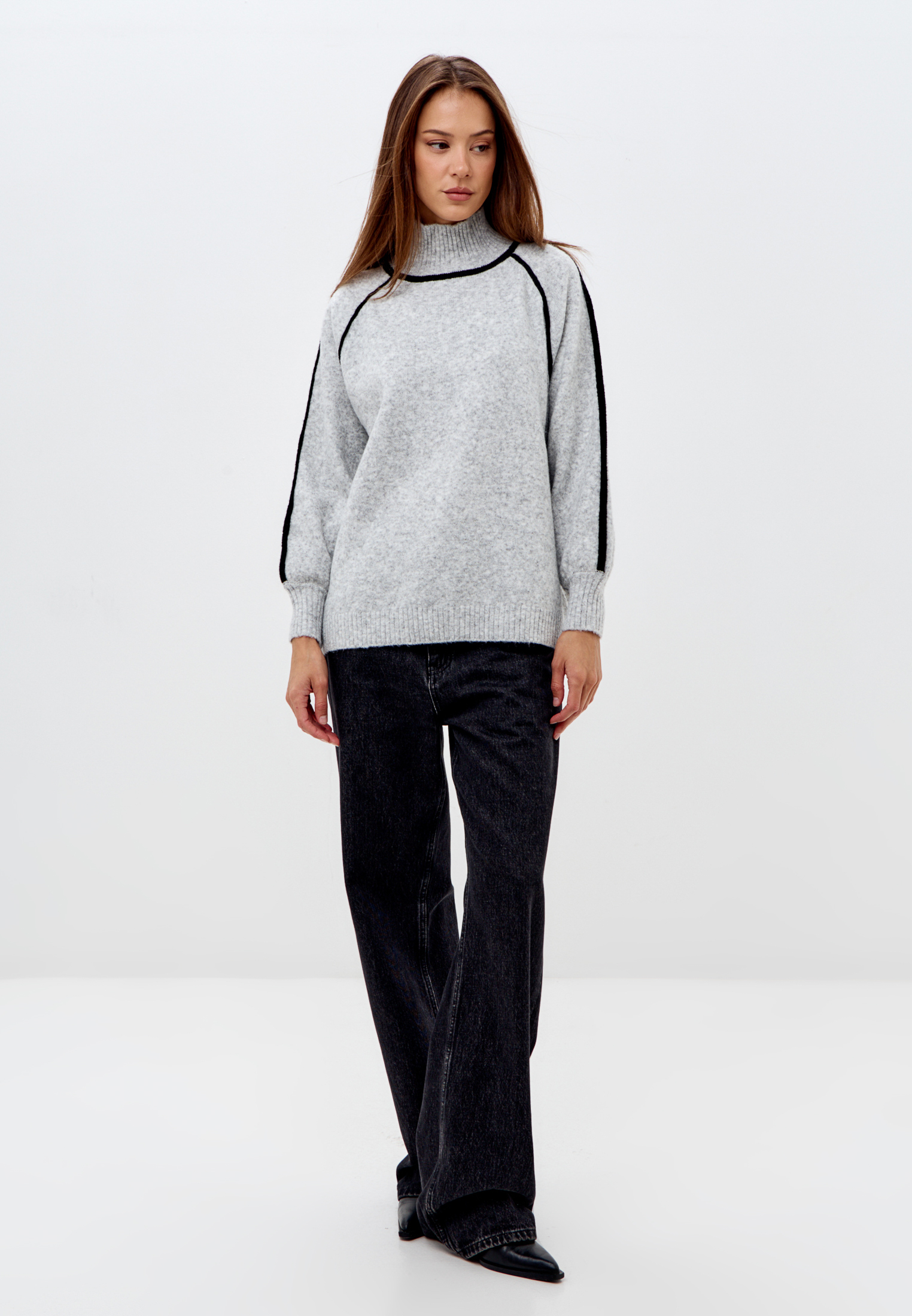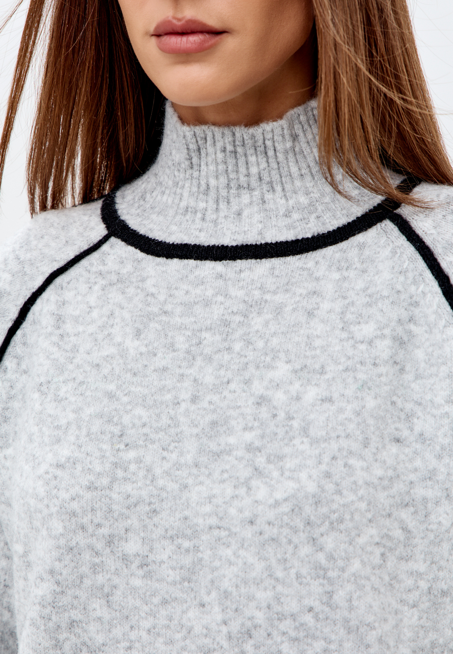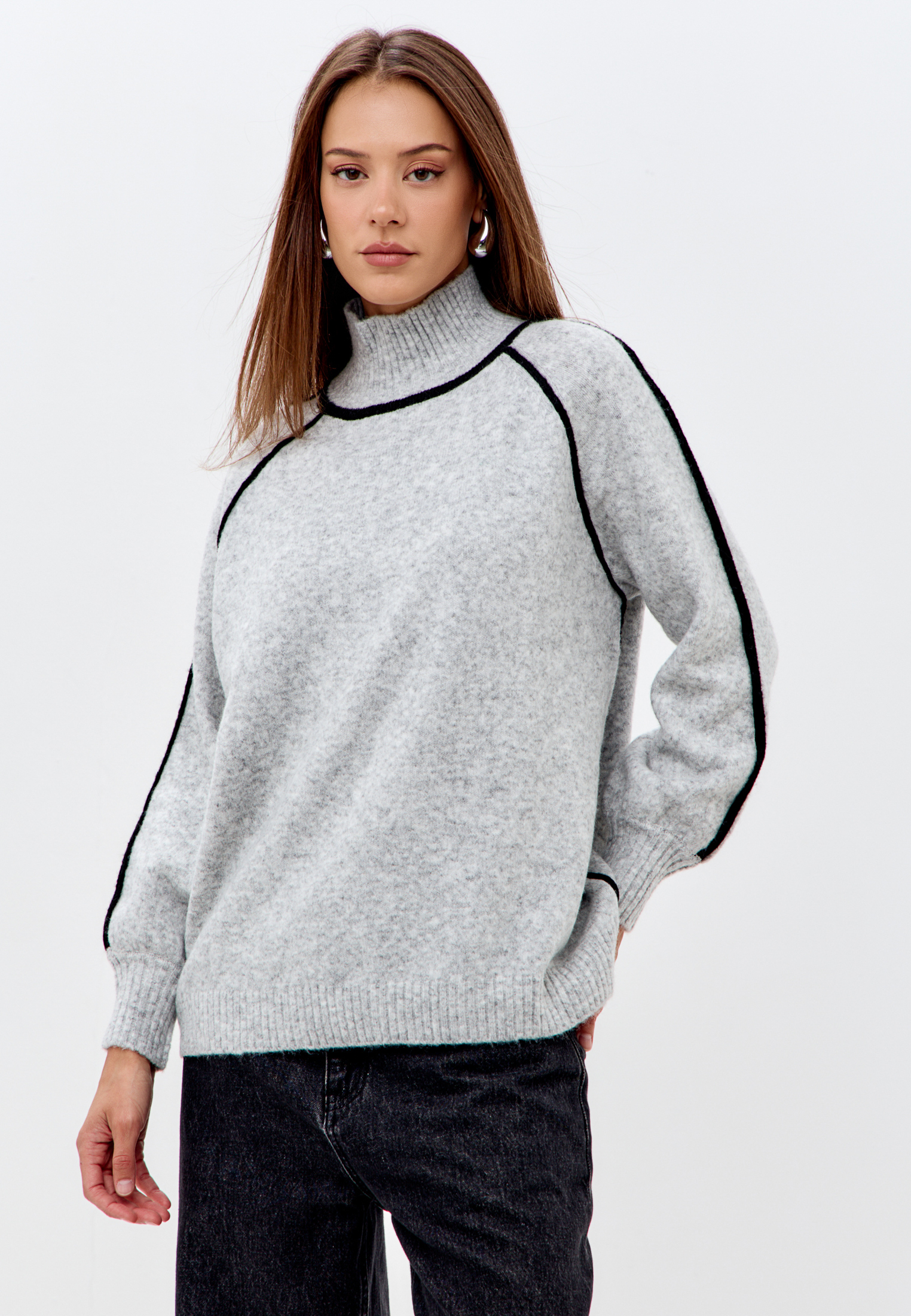 Свитер с высоким горлом с контрастными вставками.