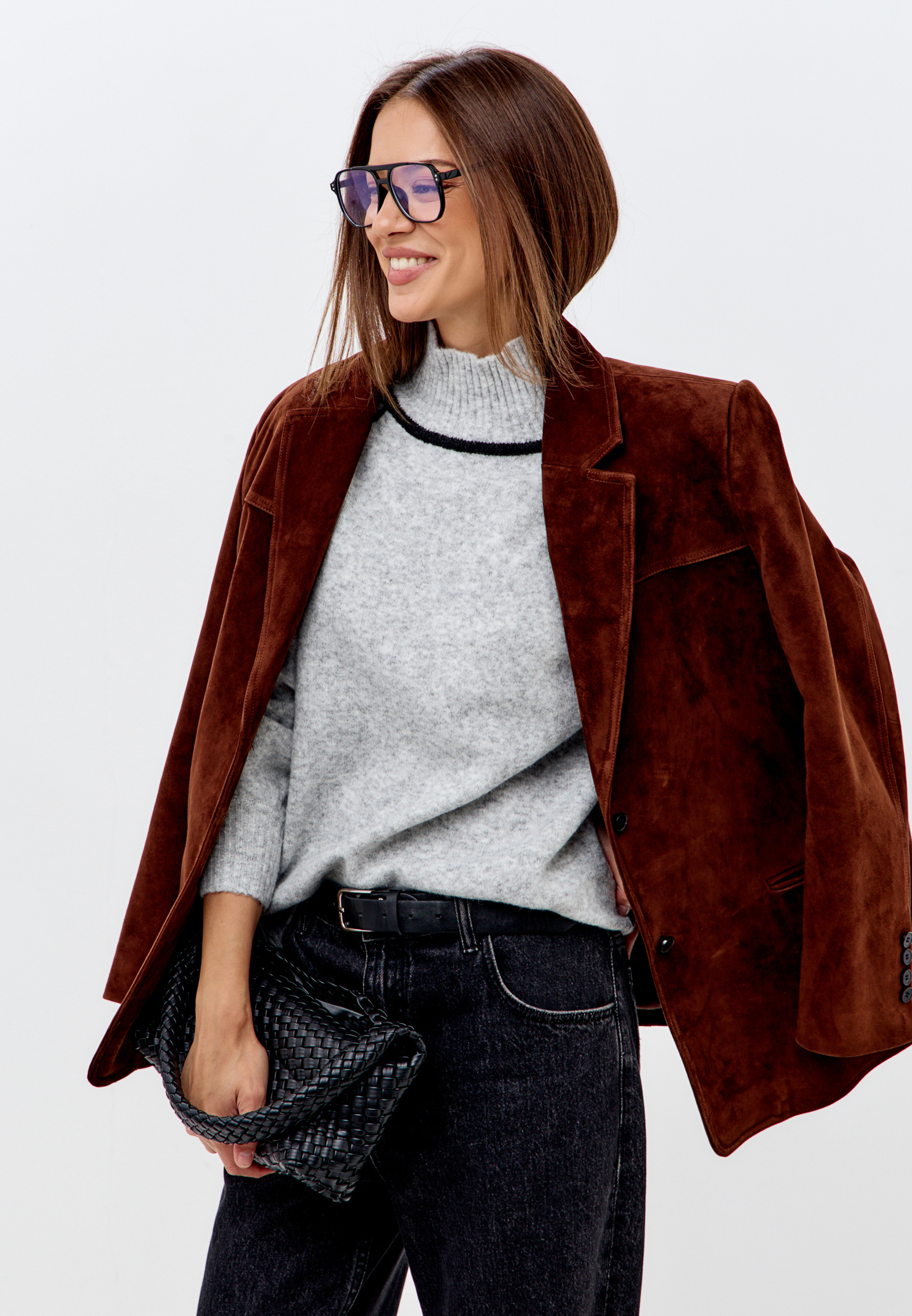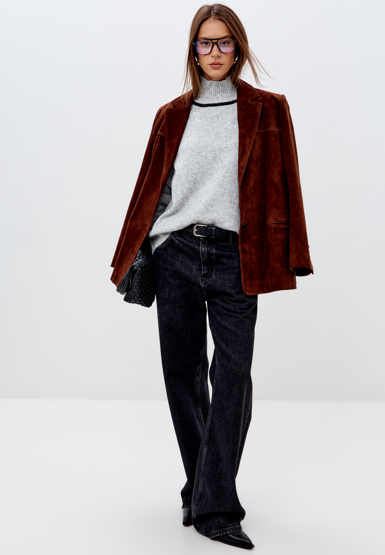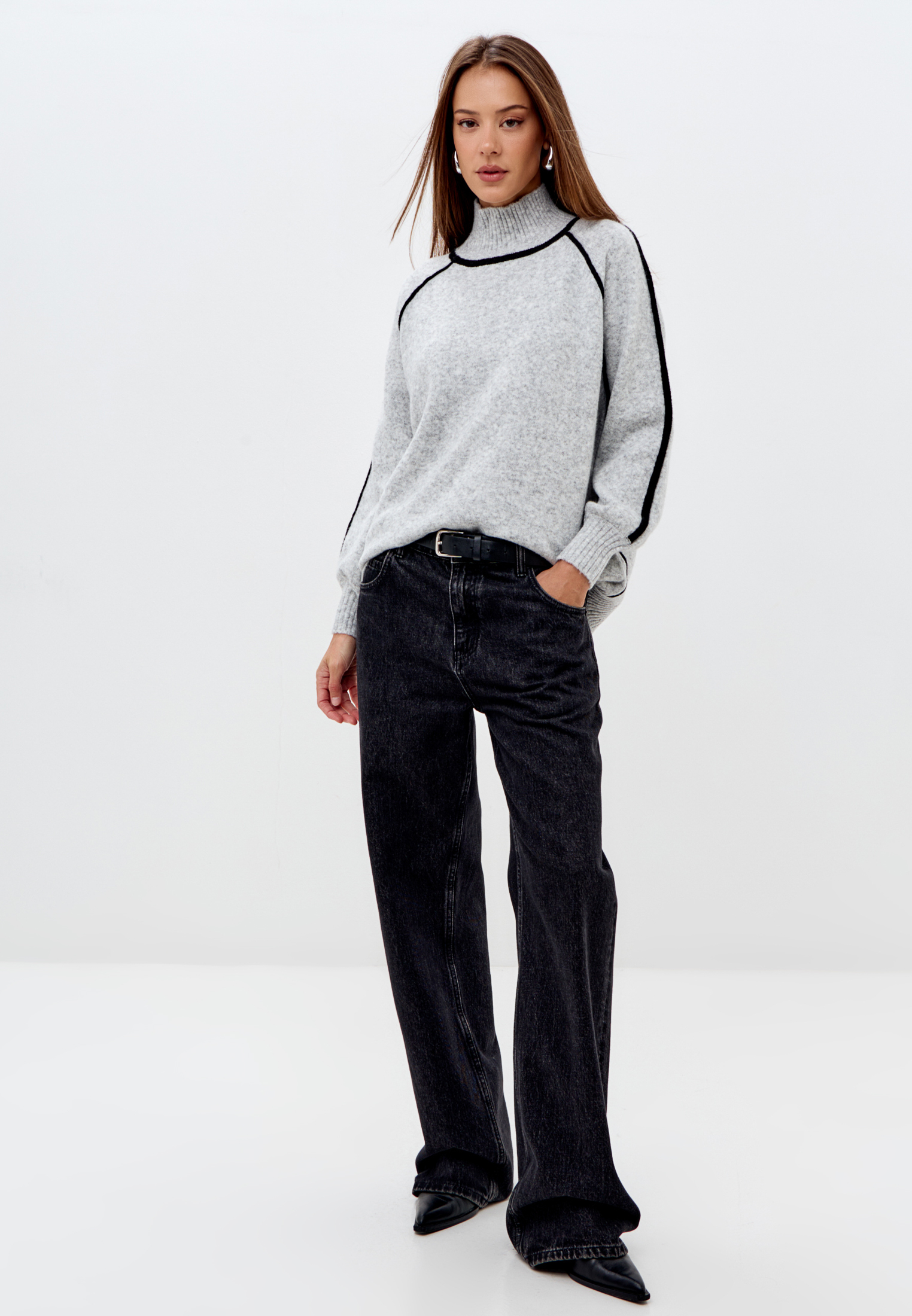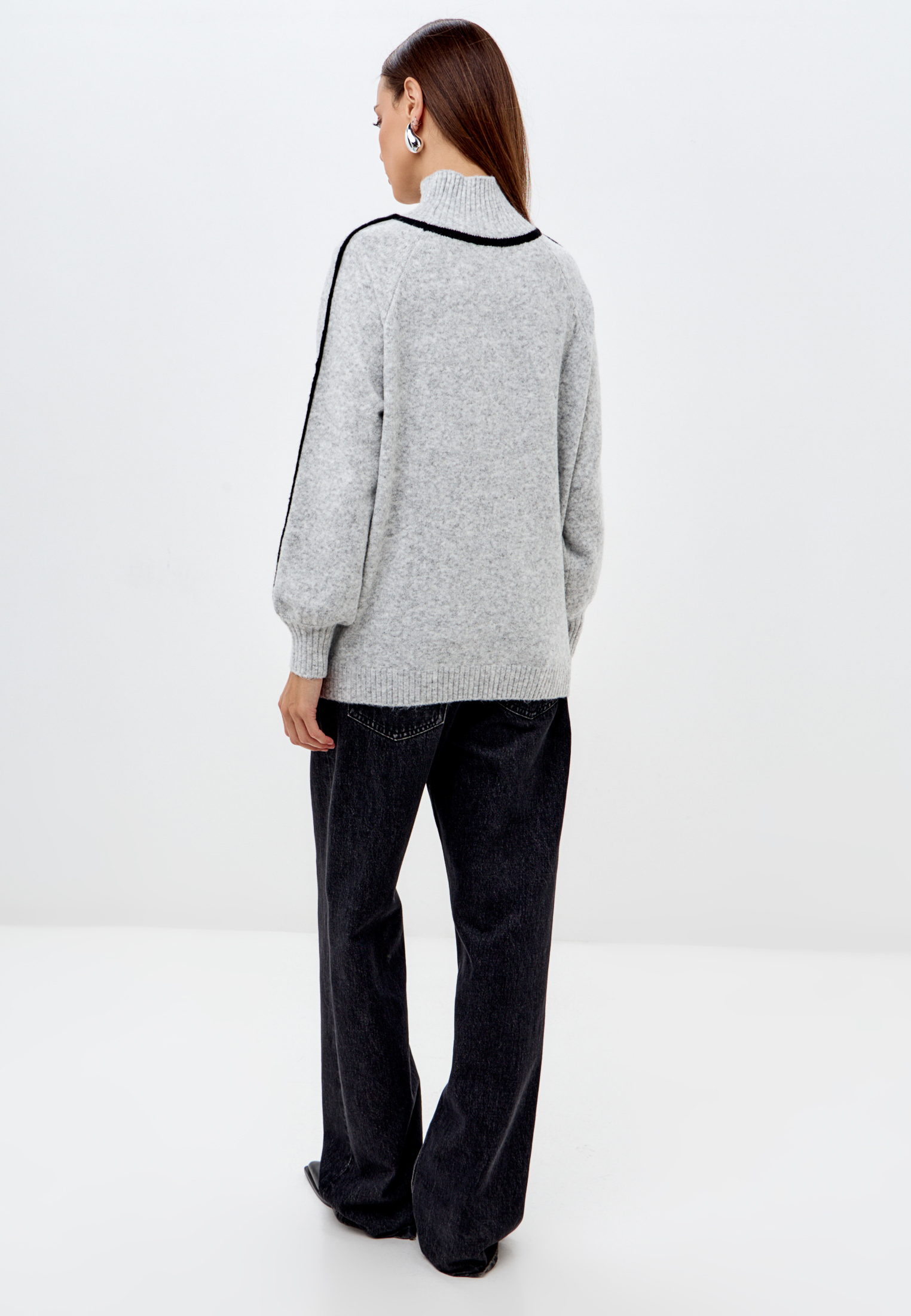 Свитер с высоким горлом с контрастными вставками.