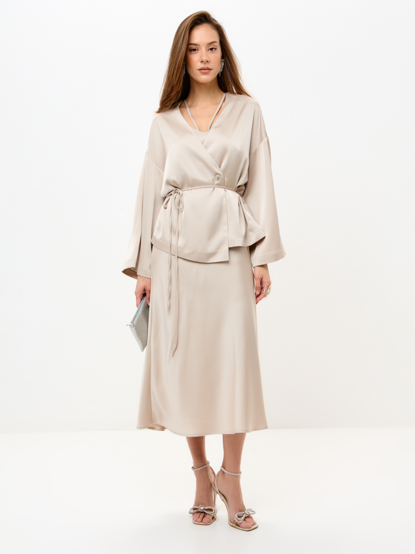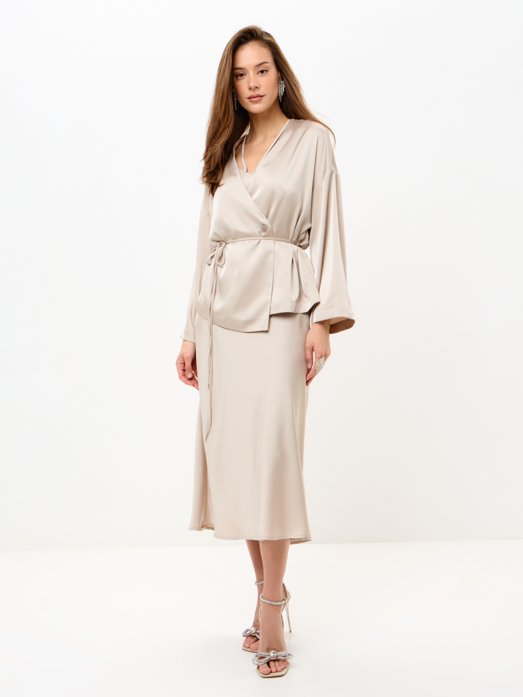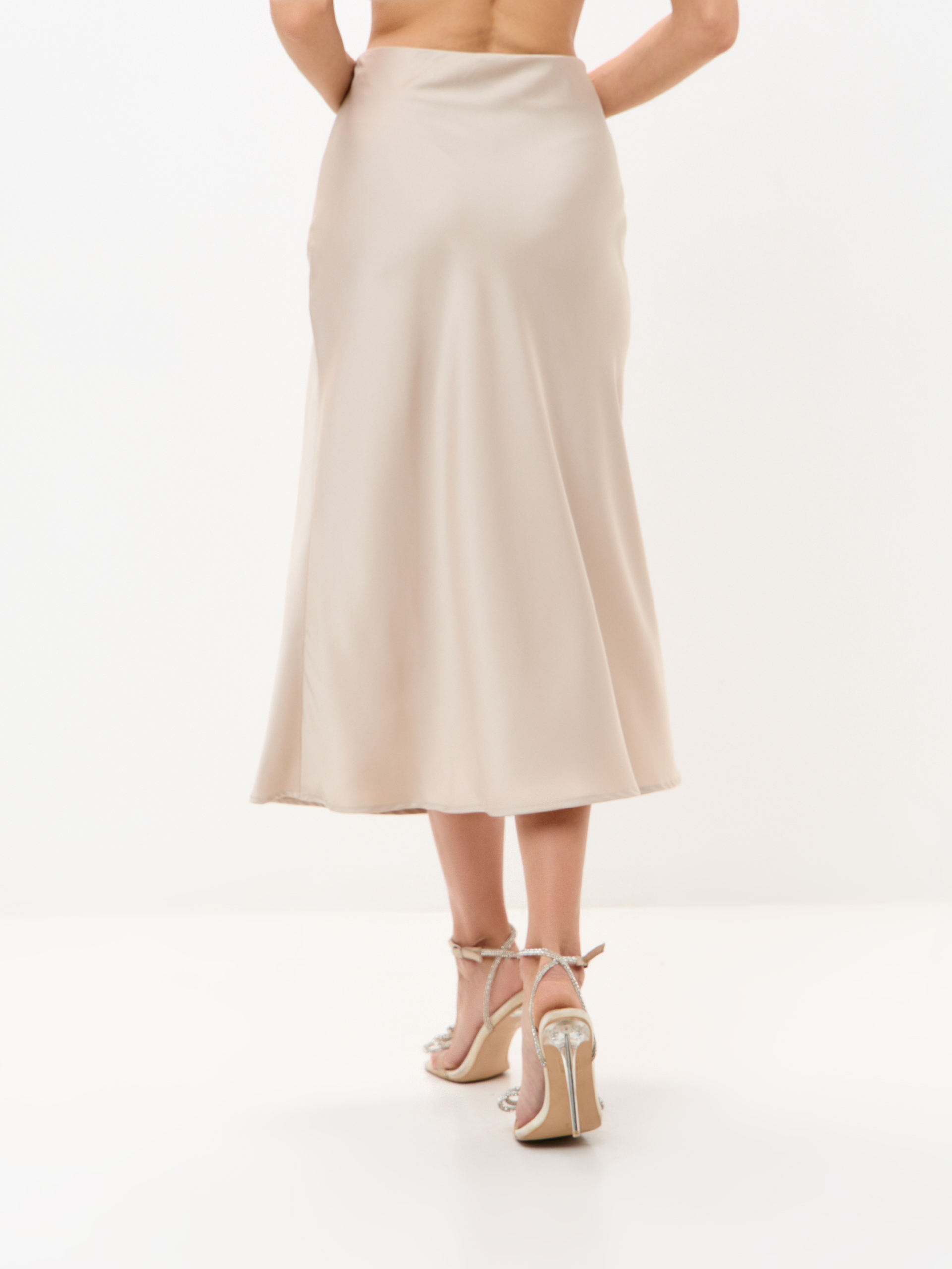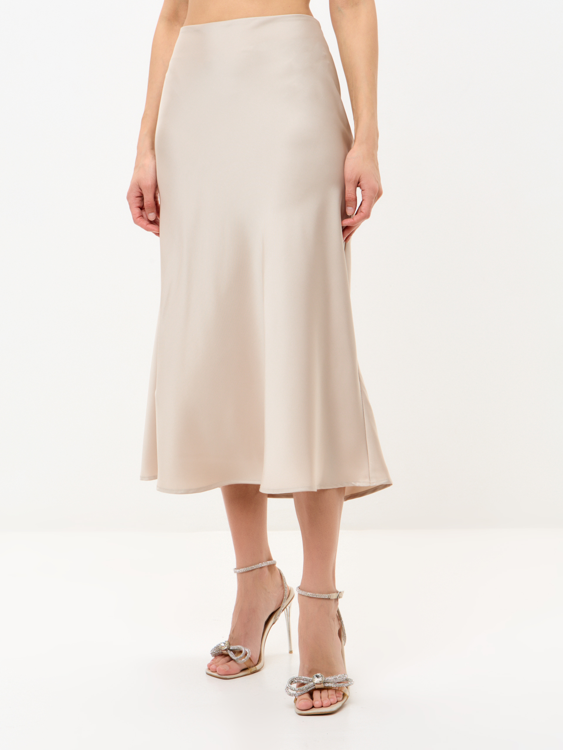 Юбка миди из искусственного шелка, силуэт трапеция, крой по косой, застежка в боковом шве на потайную молнию.