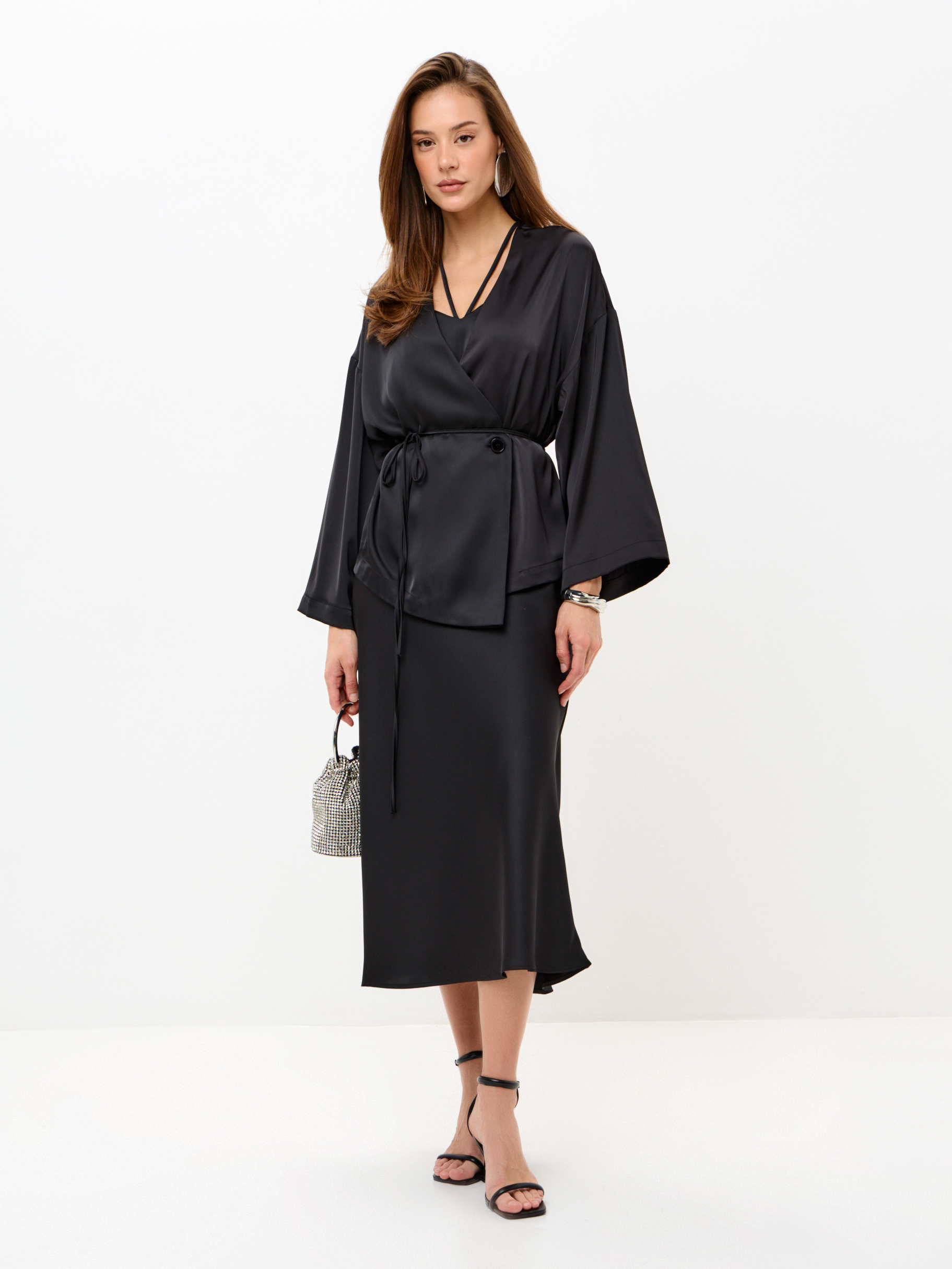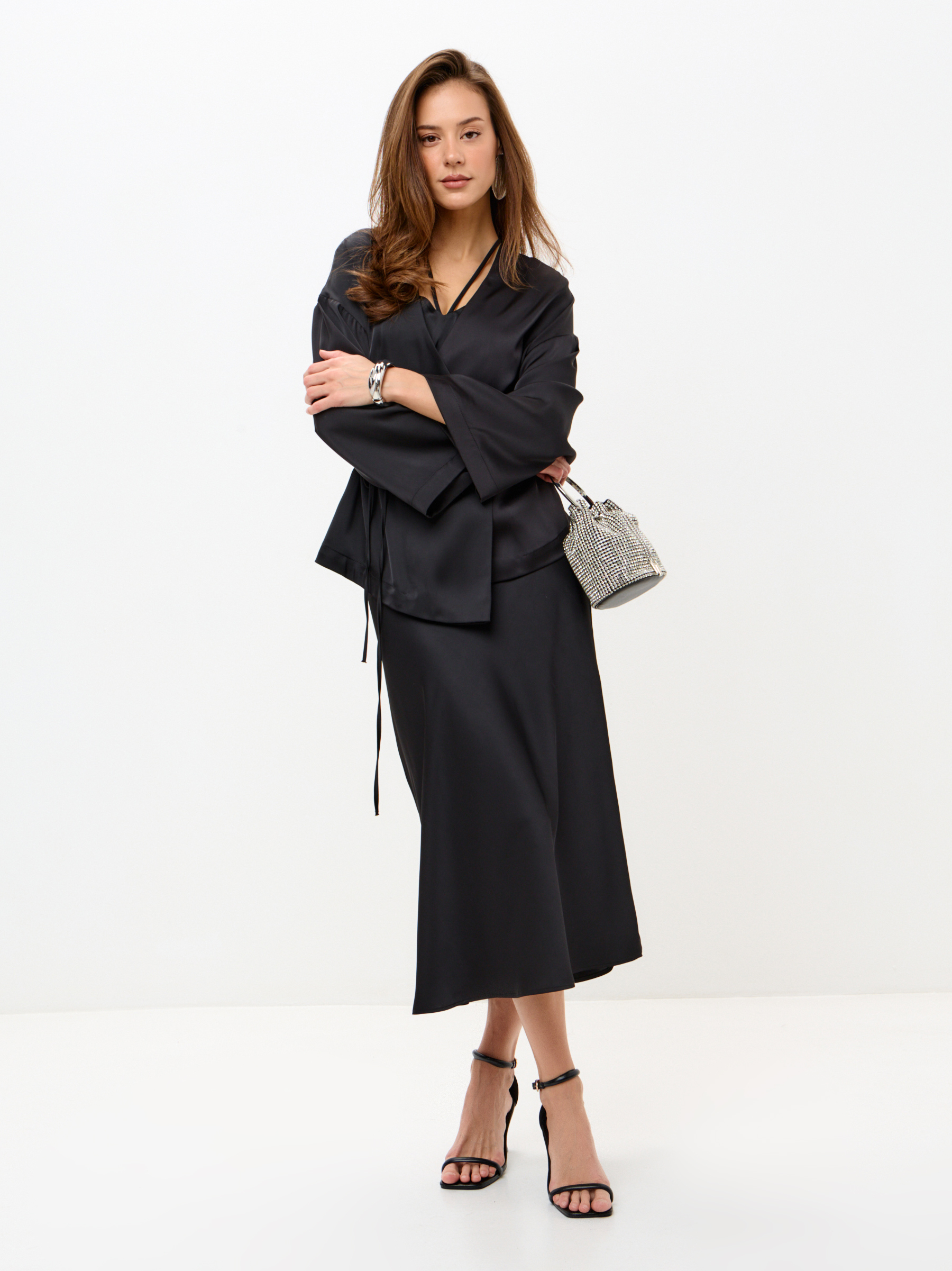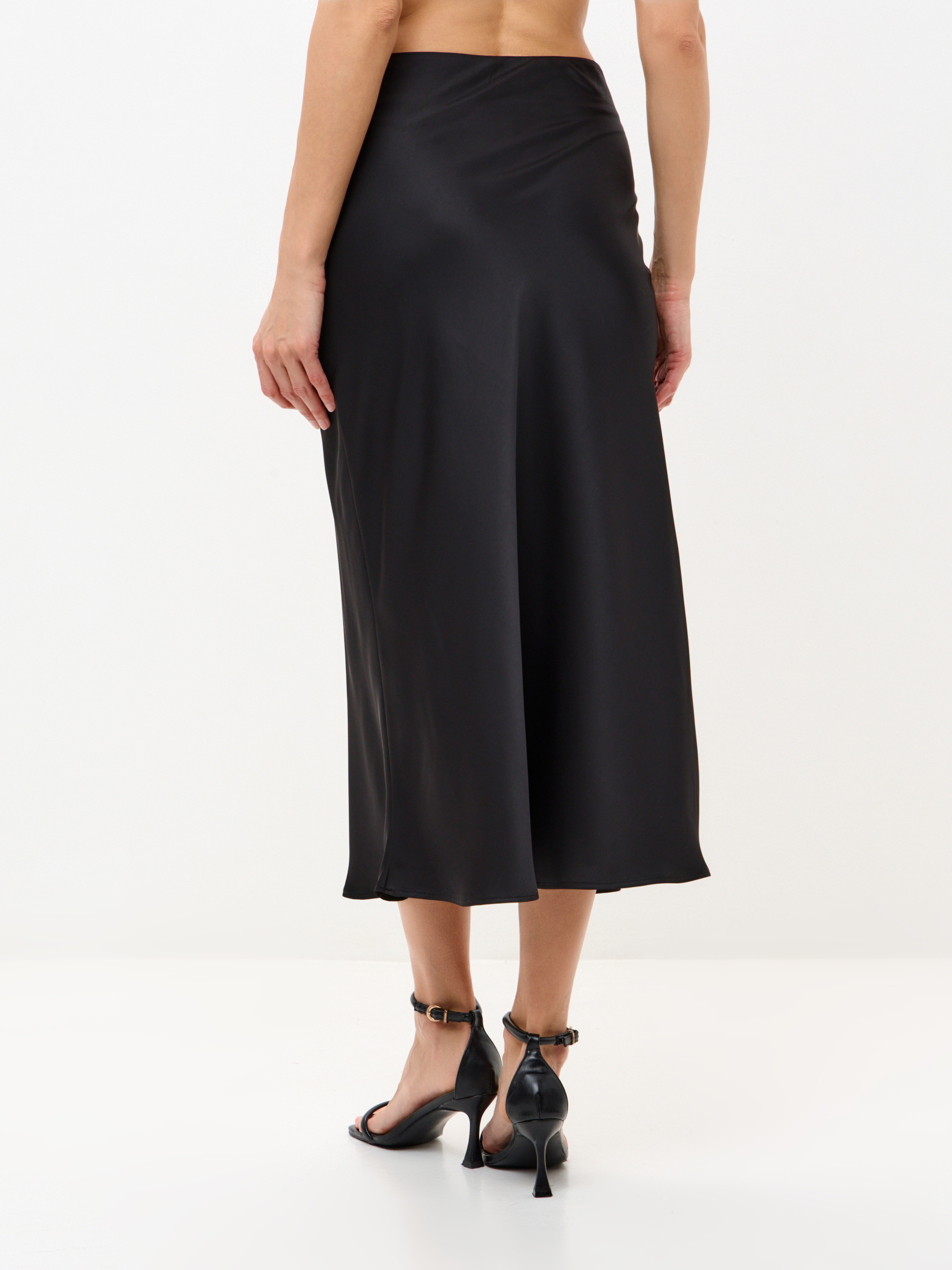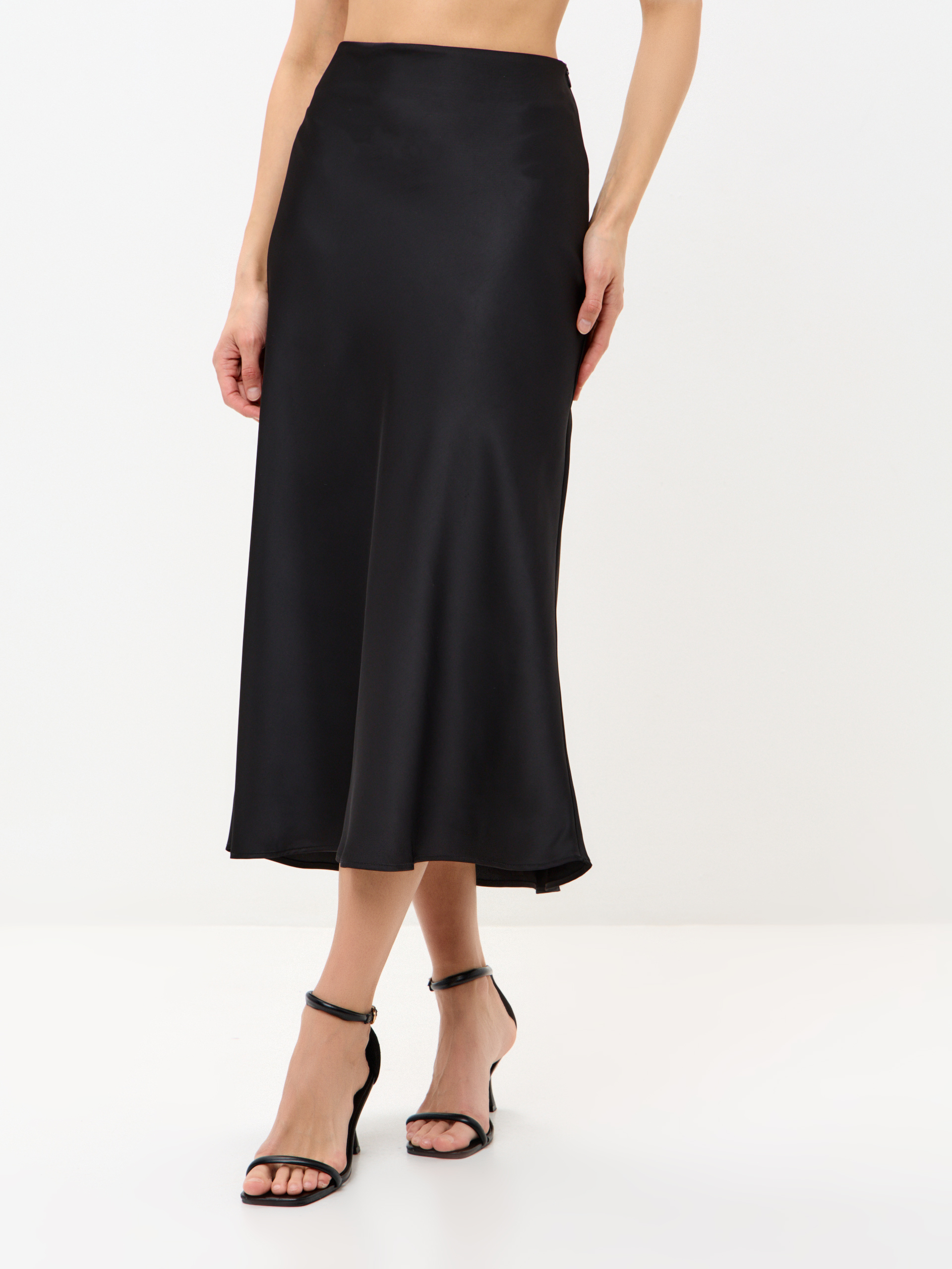 Юбка миди из искусственного шелка, силуэт трапеция, крой по косой, застежка в боковом шве на потайную молнию.