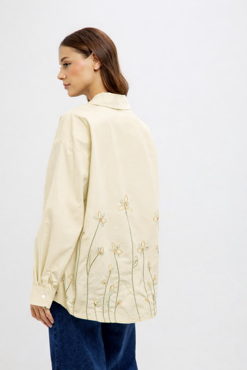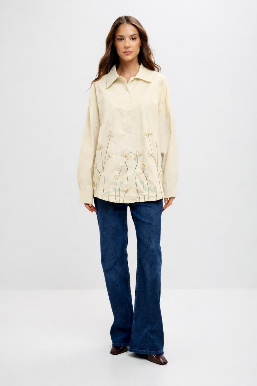 Рубашка из хлопка, свободного силуэта с вышивкой и накладным карманом.
